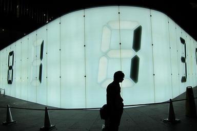 Keywords: led lights screens numbers man guy silhouette pylons street night dark