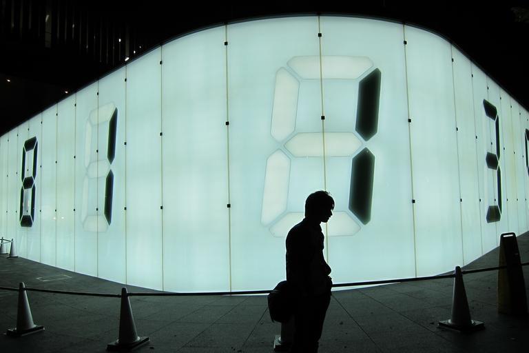 MAKE A MEME View Large Image led lights screens numbers man guy silhouette pylons street night dark