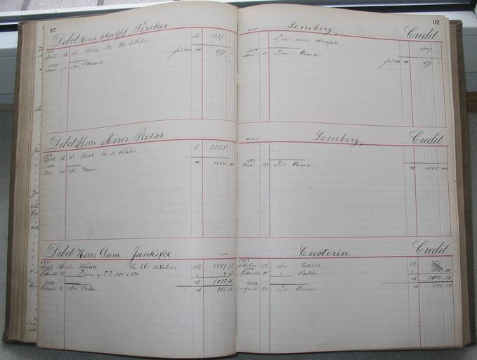 | Keywords: Ledger of the fur trader Dedo from Leipzig, 1876-1885 092.jpg Hauptbuch des Leipziger Rauchwarenhändlers Dedo 1986-1975 091 093 Herrn Adolpf Fisiher Lemberg in der Ukraine englisch Lviv Herrn Moses Reiss Lemberg Herrn Dam Jankofze Castoria Collection Kuhn 2010-12-29 15 00 47 Dedo PD-old Ledger of the fur trader Dedo in Leipzig 1876-1885 Furriers in Lviv Fisiher Adolpf History of fur trade in Kastoria Jonkofze Dam Furriers and fur traders of Kastoria named in the accountancy of Naoum Dedo in Leipzig Jankofze Dam |