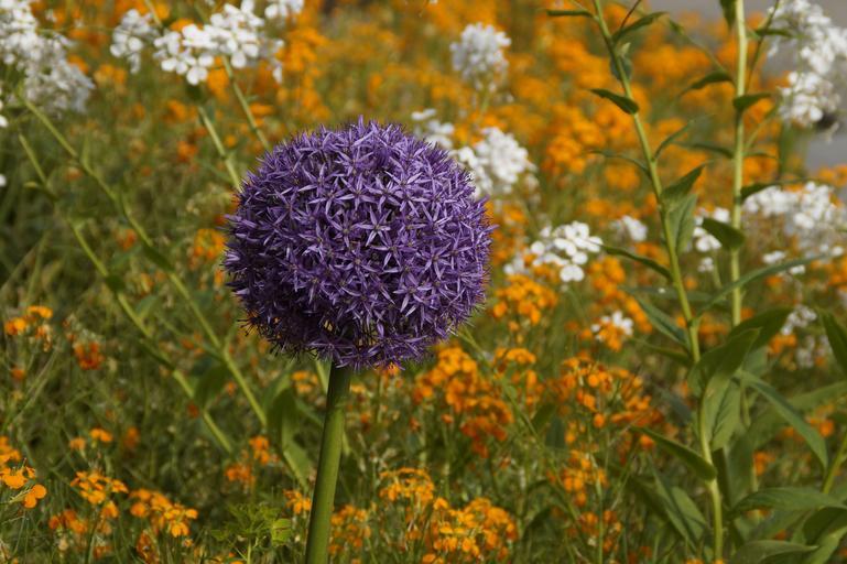 Keywords: leek bloom purple violet blue ball globose plant blossom bloom garden colorful splash of color bed