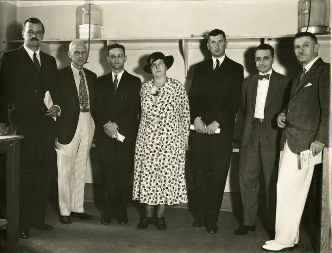 Keywords: smithsonian institution smithsonianinstitution smithsonian institution archives smithsonianinstitutionarchives 2012 women's history month womenshistorymonth women in science womeninscience seven standing group portrait geneticists genetics print dress hat bowtie eyeglasses glasses 1937 1930s thirties scientists science biology medicine medical genetics medicalgenetics twin studies twinstudies cancer oncology ophthalmology eugenics canadian canadian eugenics society canadianeugenicssociety academia government private 20th century - early 20thcenturyearly groupshot people indoor monochrome Subject: Yale University School of Medicine        United States Public Health Service        University of Western Ontario        American Society of Human Genetics        University of Oslo        Memorial Hospital for Cancer and Allied Diseases of New York City        University of Paris Type: Black-and-white photographs Date: 1937     C. 1937 Topic: Women scientists Local number: SIA Acc. 90-105 [SIA2008-5337] Summary: In this photograph, titled "Most Famous Cancer Researchers in the World," are shown (left to right): geneticist Clarence Cook Little (1888-1971); physiologist Edgar Allen (1892-1943); biologist Howard Bancroft Andervont (1898-1981); geneticist Madge Thurlow Macklin (1893-1962); physician Leiv Kreyberg (b. 1896); biophysicist Gioacchino Failla (1891-1961); and radiation oncologist Henri Coutard (1876-1950). At the time the photograph was taken, Little headed the Roscoe B. Jackson Laboratory, Bar Harbor, Maine; Allen was professor of anatomy at Yale University Medical School; and Andervont was with the U.S. Public Health Service. Macklin was then associate professor of histology and Embryology at University of Western Ontario, and later served as president of the American Society of Human Genetics. Kreyberg taught at the University of Oslo; Failla was then working at the Cancer Memorial Hospital of New York City; and Coutard was chief of the department of x-ray therapy for cancer at the Radium Institute, University of Paris Cite as: Acc. 90-105 - Science Service, Records, 1920s-1970s, Smithsonian Institution Archivess Persistent URL:Link to data base record Repository:Smithsonian Institution Archives View more collections from the Smithsonian Institution. Subject: Yale University School of Medicine United States Public Health Service University of Western Ontario American Society of Human Genetics University of Oslo Memorial Hospital for Cancer and Allied Diseases of New York City University of Paris Type: Black-and-white photographs Date: 1937 C. 1937 Topic: Women scientists Local number: SIA Acc. 90-105 [SIA2008-5337] Summary: In this photograph, titled "Most Famous Cancer Researchers in the World," are shown (left to right): geneticist Clarence Cook Little (1888-1971); physiologist Edgar Allen (1892-1943); biologist Howard Bancroft Andervont (1898-1981); geneticist Madge Thurlow Macklin (1893-1962); physician Leiv Kreyberg (b. 1896); biophysicist Gioacchino Failla (1891-1961); and radiation oncologist Henri Coutard (1876-1950). At the time the photograph was taken, Little headed the Roscoe B. Jackson Laboratory, Bar Harbor, Maine; Allen was professor of anatomy at Yale University Medical School; and Andervont was with the U.S. Public Health Service. Macklin was then associate professor of histology and Embryology at University of Western Ontario, and later served as president of the American Society of Human Genetics. Kreyberg taught at the University of Oslo; Failla was then working at the Cancer Memorial Hospital of New York City; and Coutard was chief of the department of x-ray therapy for cancer at the Radium Institute, University of Paris Cite as: Acc. 90-105 - Science Service, Records, 1920s-1970s, Smithsonian Institution Archivess Persistent URL:Link to data base record Repository:Smithsonian Institution Archives View more collections from the Smithsonian Institution. |
