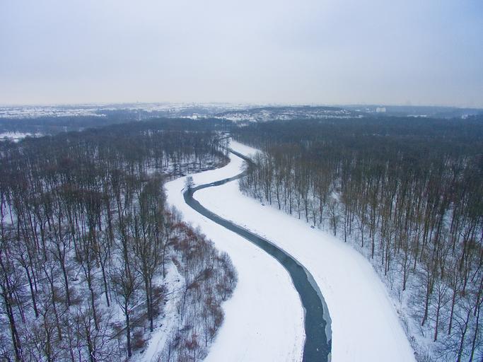 Keywords: leipzig auensee river winter snow nature water ice landscape silent frost germany cold wintry snowy aerial view drone