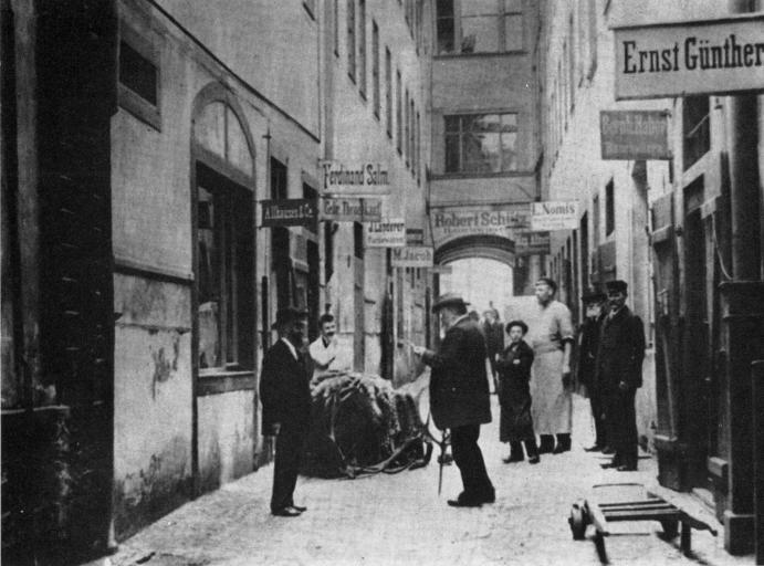 | Keywords: Leipzig, Brühl-Hof, Firma Ernst Günther.jpg Innenhof des žSchwarzen Hufeisens Nikolaistraße 55 / Ecke Brühl Veröffentlicht anlässlich des Umzugs der Firma Günther Heinze gegründet 23 Februar 1900 in Leipzig kurz danach trat Ernst Heinze in das Unternehmen ein Frankfurt am Main im Jahr 1968 in neue Räume jetzt Niddastraße 66 anfangs Nr 76 1953 dann Nr 56 Zu erkennen sind die Firmen beginnend links vorn im Uhrzeigersinn A Co Ferdinand Salm J Linderer Pelzwaren M Jacob Robert Schütz Max Altner J Nomis Bernh Haber Rauchwaren Ernst Günther Veröffentlicht an anderer Stelle in Der Rauchwarenmarkt vom 8 Oktober 1931 Die Firma Ernst Günther Heinze die am 1 Oktober ihre Geschäftsräume von Brühl 47 nach Nikolaistraße 33-37 1 Stock verlegt hat besteht am Leipziger Brühl bereits seit über 30 Jahren Rund um den Pelz - Pelz International Oktober 1968 S 96 after 1900 author PD-old Brühl Leipzig Fur wholesale dealers in Leipzig Rund um den Pelz 1968-10 Nikolaistraße 55 Leipzig Fur fashion in 1901 Höfe am Brühl |