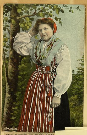 | Keywords: Leksandkvinna, 1911.jpg From the U S Library of Congress http //memory loc gov/master/rbc/rbcmil/scrp7009302/001 jpg ITEM TITLE Postcard labeled Leksand shows Swedish woman in traditional folk costume CREATED/PUBLISHED Stockholm Sweden June 1911 NOTES Verso manuscript note from M G P probably Mary Gray Peck thanks Anne Fitzhugh Miller for farewell note and Votes for Women ribbon from New York City suffrage parade; reports Carrie Chapman Catt being well-received and invited to have audience with King of Norway PD-old-70-1923 Leksand Municipality Carrie Chapman Catt Traditional costumes of Dalarna |