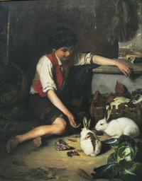| Keywords: Lembesis Polychronis Child with Rabbits high.jpg Artwork Creator Polychronis Lembesis Child with rabbits Το αιδί με τα κουνέλια 1879 oil on canvas cm 103 130 Institution National Gallery of Greece High resolution version with very slight barrel distortion credit line Δωρεά ιχαήλ και Αργ Σαλβάγου http //radikal ru/F/i079 radikal ru/1001/2c/97ac1995ac85 jpg html http //i079 radikal ru/1001/2c/97ac1995ac85 jpg file Π 632 PD-old-auto 1913 Other versions thumb left 150px lower resolution derivative works Lembesis Polychronis Child with Rabbits high contrast jpg Polychronis Lembesis Paintings of rabbits |