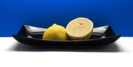 Keywords: lemon fruit black plate blue background fresh citrus