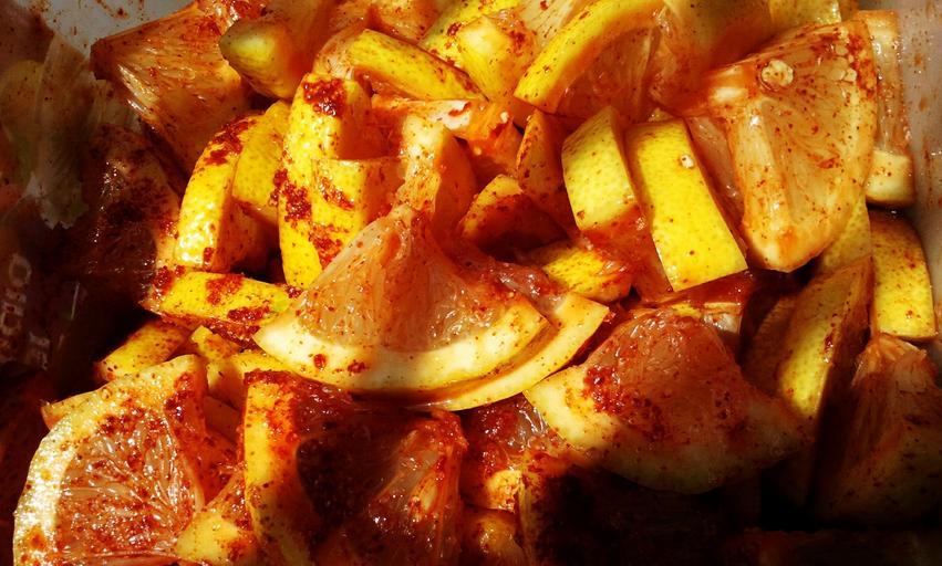 Keywords: lemons citrus fruits slices chili pepper powders spicy hot spices cooking ingredients foods sour