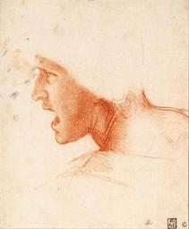 Keywords: Leonardo da Vinci - Study of a Warrior's Head for the Battle of Anghiari - Google Art Project.jpg red chalk on very pale pink prepared paper Esterházy Collection acquired in 1870 special url_id agGehq9rnyX-vw PD-old-100-1923 1519 Google Art Project works by Leonardo da Vinci Drawings by Leonardo da Vinci in the Museum of Fine Arts Budapest Drawings of human noses Faces of men in art |