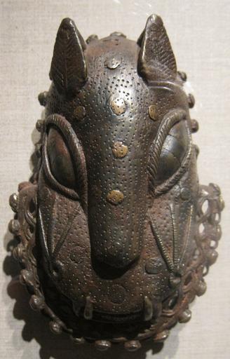 | Keywords: Leopard head hip ornament, Court of Benin, De Young Museum.JPG en Leopard head hip ornament from Nigeria Court of Benin Edo people late 18th century bronze copper and iron De Young Museum own Wmpearl photo 2012 African art in the De Young Museum Benin Bronzes Cc-zero |