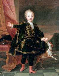 Keywords: Léopold Clément Charles de Lorraine, Pierre Gobert.jpg Painting Creator Pierre Gobert 1710 Oil on canvas cm 69 58 Institution Versailles http //3 bp blogspot com/_x6oN28pMDZg/StOkkkXv98I/AAAAAAAAC1s/GQ8A3a4IW6U/s400/GOBERTPierre-LeopoldCl C3 A9mentPrincehereditairedeLorraine 1707-1723 -Huilesurtoile-69x58cm-Chateau Versailles jpg 3 bp blogspot com 000PE007290 other versions PD-old-100 DEFAULTSORT 1710; Léopold Clément de Lorraine Pierre Gobert 18th-century portrait paintings in the Musée national du Château de Versailles Léopold Clément Hereditary Prince of Lorraine Nicolas Ferry Bebe 1710 oil on canvas paintings in France 1710 portrait paintings from France 18th-century oil portraits of boys at full length 18th-century portrait paintings with dogs Chairs in portrait paintings Checkered floors in portrait paintings Cloaks in art Portrait paintings of boys with dogs Portrait paintings of standing boys Red drapery in portrait paintings