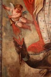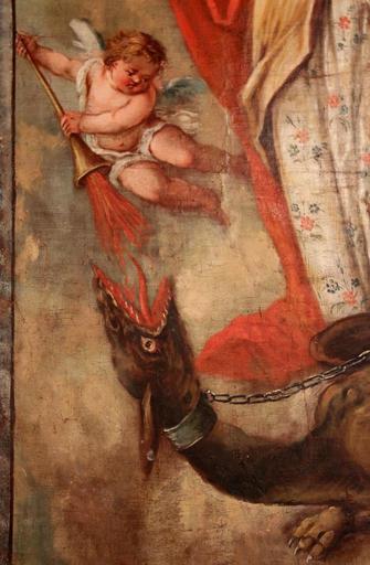 Keywords: Leopold Layer - Angel v boju z zmajem (del).jpg Artwork Creator Leopold Layer by 1828 oil canvas http //www slovenskenovice si/novice/slovenija/o-slikarju-ki-je-baroku-pridahnil-domaco-noto www slovenskenovice si PD-art-100 Religious paintings by Leopold Layer 18th-century oil on canvas paintings in Slovenia Paintings of angels in Slovenia Paintings of dragons