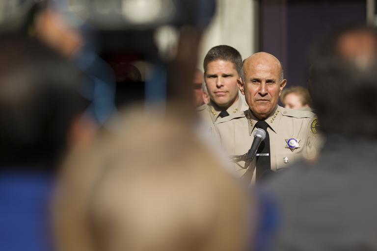 | Keywords: LeroyDavidBaca.jpg en Los Angeles County Sheriff Leroy David Lee Baca holds a press conference outside LASD headquarters in Montery Park announcing his retirement after serving 15 years as sheriff and 48 years with the department 1/7/2014 own Scott Liebenson 2014-01-07 https //www flickr com/photos/41802269 N03/11824243293/in/set-72157639526998765 Los Angeles County Sheriff's Department | ||||