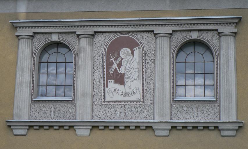 Keywords: LesniceKostelRelief.jpg cs Kostel svatého Jakuba Většího Lesnice - moderní reliéf na stěně kostela Own Martin Vavřík 6 12 2008 Church of Saint James the Greater Lesnice Church windows in the Czech Republic Sgraffito in the Czech Republic