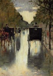 Keywords: Lesser Ury - Berliner Straßenszene mit Pferdetaxis.jpg Artwork creator Lesser Ury circa s 1900 - s 1910 oil canvas cm 50 8 35 6 accession number object history Anonymous sale; Christie's New York 15 November 1989 lot 431 where purchased credit line L Ury ~ lower left signature 2010 01 27 PD-old-auto-1923 1931 Lesser Ury Paintings of Berlin |