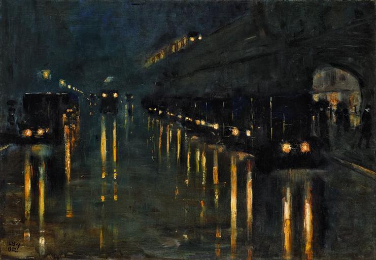 | Keywords: Lesser Ury Hochbahnhof Bülowstraße bei Nacht 1922.jpg Hochbahnhof Bülowstraße bei Nacht oil on canvas 70 x 100 5 cm object history unknown Ury 1922 ~ lower left signature http //www villa-grisebach de/ 1922 Creator Lesser Ury thumb left PD-old-auto 1931 Lesser Ury 1922 paintings Paintings of Berlin Night landscape paintings Night in Berlin U-Bahnhof Bülowstraße Berlin Paintings of streets Paintings of automobiles Rain in art Images from Villa Grisebach Auktionen Train stations at night in Germany |