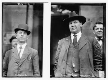 | Keywords: Lessigandhaywood.jpg  Photo shows union leaders en Adolph Lessig ca 1869-1935 and en William Dudley Haywood 1869-1928 probably during the 1913 Paterson Silk Strike in Paterson no date recorded on caption card Bain News Service publisher 1 negative glass ; 5 x 7 in or smaller Repository Library of Congress Prints and Photographs Division Washington D C 20540 USA hdl loc gov/loc pnp/pp print General information about the Bain Collection is available at hdl loc gov/loc pnp/pp ggbain Call Number LC-B2- 2658-9 P P ggbain 12728 Rights Info No known restrictions on publication <gallery> File Lessigandhaywood tif tif File Lessig jpg crop File Lessigandhaywood - Copy jpg crop </gallery> PD-Bain 1913 in New Jersey Bill Haywood Paterson New Jersey-Textiles 1910s conflicts 1913 in military history Economic history of the United States Economy of New Jersey History of New Jersey Paterson New Jersey Members of the Industrial Workers of the World Strikes in the United States Trade unionism of the United States Textile workers Silk Black and white photographs of Paterson New Jersey |