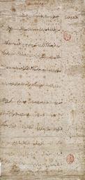 | Keywords: Letter of Tamerlane to Charles VI 1402.jpg Artwork en Letter of Tamerlane to Charles VI Original version written in Persian fr Lettre de Tamerlan à Charles VI roi de France pour l'engager à envoyer des marchands en Orient Original en langue persane daté du 30 juillet 1402 نامهٔ تیمور گورکانی به شارل ششم فرانسه این نامه به زبان فارسی و دربارهٔ مسائل بازرگانی است و در خزانهٔ اسناد رسمی فرانسه نگهداری می شود islamic 1402-07-30 0805-01-01 ink paper Size cm 20 47 Institution Archives nationales France object history exhibition history credit line fa accession number J937/II/ No7 http //www culture gouv fr/public/mistral/caran_fr ACTION RETROUVER FIELD_1 TOUT VALUE_1 FIELD_2 COTE VALUE_2 FIELD_3 PERSONNE VALUE_3 FIELD_4 LIEUX VALUE_4 FIELD_5 MOTS-MAT VALUE_5 FIELD_6 TYPEDOC VALUE_6 FIELD_7 DATDEB VALUE_7 1402 2f07 2f30 FIELD_8 Date 20fin 20document VALUE_8 1402 2f07 2f30 20 FIELD_9 NOMDOS VALUE_9 NUMBER 1 GRP 0 REQ 28 281402 2f07 2f30 29 20 3aDATDEB 20 20ET 20 20 28 281402 2f07 2f30 29 20 3aDATFI 20 29 29 USRNAME nobody USRPWD 4 24 2534P SPEC 9 SYN 1 IMLY MAX1 1 MAX2 1 MAX3 100 DOM All Timur Charles VI of France Letters in Persian Collections of Archives nationales France Letters of Iran Letters of France PD-old-100-1923 |