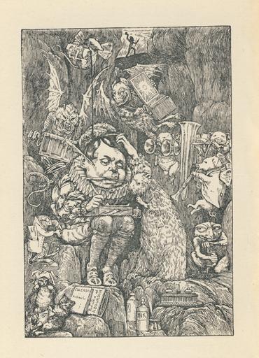 Keywords: Lewis Carroll - Henry Holiday - Hunting of the Snark - Plate 7 unrestored.png wikitable Do not delete this image This is the original scan of File Lewis Carroll - Henry Holiday - Hunting_of_the_Snark - Plate 7 jpg It is over the present limit for thumbnailing of PNGs; however it can be downloaded and documenting your restoration work requires uploading the original version you worked from and so this is a necessary file File Lewis Carroll - Henry Holiday - Hunting_of_the_Snark - Plate 7 jpg Seventh of Henry Holiday's original ilustrations to The Hunting of the Snark by Lewis Carroll From Fit the Fifth The Beaver's Lesson The Butcher and Beaver hear the song of the Jubjub bird and this causes the Butcher to be reminded of his childhood and begin a lengthy lesson to he Beaver Afterwards they become friends As for the strange creatures The Beaver brought paper portfolio pens And ink in unfailing supplies While strange creepy creatures came out of their dens And watched them with wondering eyes So engrossed was the Butcher the heeded them not As he wrote with a pen in each hand And explained all the while in a popular style Which the Beaver could well understand The rest of the lesson is pretty much complete nonsense The Hunting of the Snark An Agony in Eight Fits by Lewis Carroll MacMillan and Co Limited St Martin's Street London 1931 Originally 1876 this edition 1931 Henry Holiday 1839-1927 after Lewis Carroll Real name Charles Lutwidge Dodgson 1832-1896 PD-Old For general use Lossless restored version Original scan SVG but from lower resolution scan The Hunting of the Snark |