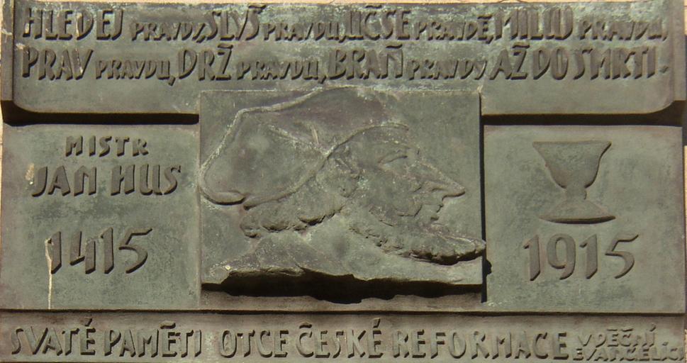 Keywords: Libcice nad Vltavou PZ CZ - Evangelical church Jan Hus plaque 101.jpg Pamětní deska M Janu Husovi nad vchodem evangelického kostela v Libčicích nad Vltavou okres Praha-západ Plaque commemorating and quoting Czech religious reformer Jan Hus above entrance of the Evangelical church in Libčice nad Vltavou Prague-West District Czech Republic Seek Truth hear Truth learn Truth love Truth speak Truth hold Truth defend Truth up to death own 2011-03 User Miaow Miaow <gallery> File Libcice_nad_Vltavou_PZ_CZ_-_Evangelical_church_098 jpg </gallery> 50 11 54 3 N 14 21 51 8 E region CZ_heading NE 0 cellpadding 5 cellspacing 0 style background bbbbbb; align center - 3 style text-align center; HLEDEJ <small>PRAVDY </small> SLYŠ <small>PRAVDU </small></small> UČ SE <small>PRAVDĚ </small> MILUJ <small>PRAVDU </small> - 3 style text-align center; PRAV <small>PRAVDU </small> DRŽ <small>PRAVDU </small> BRAŇ <small>PRAVDY</small> AŽ DO SMRTI - text-align center; <small>MISTR</small> - text-align center; JAN HUS - text-align center; 1415 1915 - 2 style text-align center; SVATÉ PAMĚTI OTCE ČESKÉ REFORMACE <small>VDĚČNÍ</small> <br /><small>EVANGELÍCI</small> Plaque to Jan Hus on the evangelical church in Libčice nad Vltavou |