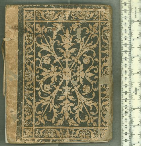 Keywords: Libro pastorale nominato arcadio - Lower cover (C65g9).jpg Style Panel design Floral; Caption Lower cover; Colour Black White; Edge Plain exhibition history Decorative Technique Blocked in black; Cover Material Paper blocked Early 16c paper over pasteboard Extremely fragile and rather damaged 1 leather tie remains object history Text 1502; Venice; Unspecified object type Cc-zero place of creation Binding Italy place of discovery Unspecified British Library image http //www bl uk/catalogues/bookbindings/LargeImage aspx RecordId 020-000015646 ImageId ImageId 55175 Copyright BL Libro pastorale nominato arcadio Uploaded with GWToolset Libro pastorale nominato arcadio - Lower cover C65g9 http //www webarchive org uk/bldatasets/bindings/C65g9 jpg Bookbinding 16th-century bookbinding British Library Bookbindings |