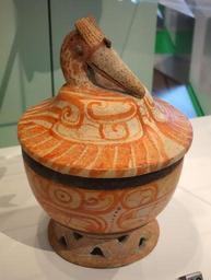 Keywords: Lidded vessel depicting cormorant, vessel 2 of 2, Maya, Maya lowlands region, Early Classic Period, 250-600 AD, ceramic - Royal Ontario Museum - DSC04504.JPG en Exhibit in the Royal Ontario Museum Toronto Ontario Canada This work is old enough so that it is in the public domain Photography was permitted in the museum without restriction 2013-10-08 16 36 44 own Daderot cc-zero Maya ceramics in the Royal Ontario Museum Uploaded with UploadWizard |