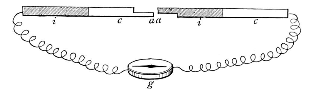 | Keywords: Life in Motion Fig 56.png en Fig 56 ” Thermal junctions of iron i and copper c g galvanometer; a a junctions that may be pressed together Life in Motion or Muscle and Nervehttps //archive org/details/b21929786 John Gray McKendrick 1892 1926 Life in Motion book Thermoelectricity |