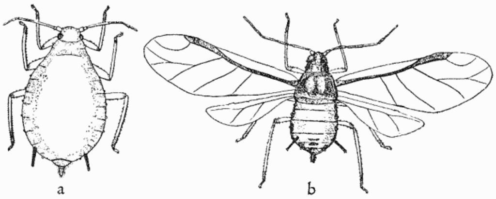 | Keywords: Life-story of insects 06fig Aphis pomi.png Original caption Apple Aphid Aphis pomi virgin females a wingless; b winged Magnified 20 times Sumary Figure 6 from The Life-Story of Insects by George H Carpenter http //www gutenberg org/etext/16410 PD-old Geo H Carpenter Aphis pomi |