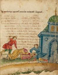 | Keywords: Life of Tsarevich Dmitry (GTG) 01a.jpg «Сбо ник житий и богослужебных последований Угличским святым» XVIII века В состав укописного Сбо ника житий и богослужебных последований Угличским святым входит лицевое Житие святого мученика Димит ия Угличского с 12 миниатю ами замечательной к асоты Рукопись была создана в Угличе либо в Угличском айоне не анее 1784-1786 годов http //pereformat ru/2012/05/zhitie-dimitriya/ more-2981 не анее 1784-1786 годов anonymous Life of Tsarevitch Dmitrij Tretyakov gallery Files uploaded by Shakko from various sources Death of Tsarevich Dmitry PD-Art |