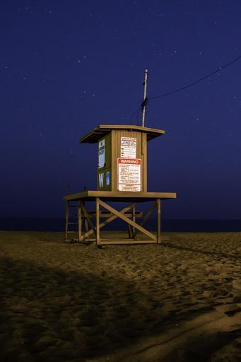 Keywords: lifeguard beach sand night sky stars wood blue water wave sea summer vacation outdoor
