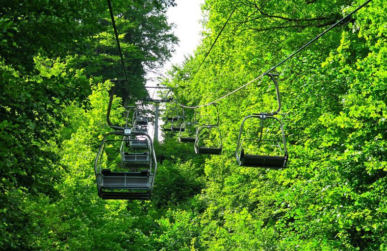 Keywords: lift chairlift mountain railway cable car alpine mountains allgäu mast lifts sunny forest green trees leaves