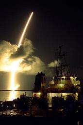 | Keywords: outdoor Description: KENNEDY SPACE CENTER, FLA. -- A seven-year journey to the ringed planet Saturn begins with the liftoff of a Titan IVB/Centaur carrying the Cassini orbiter and its attached Huygens probe. This spectacular streak shot was taken from Hangar AF on Cape Canaveral Air Station, with a solid rocket booster retrieval ship in the foreground. Launch occurred at 4:43 a.m. EDT, October 15, from Launch Complex 40 on Cape Canaveral Air Station. After a 2.2-billion mile journey that will include two swingbys of Venus and one of Earth to gain additional velocity, the two-story tall spacecraft will arrive at Saturn in July 2004. The orbiter will circle the planet for four years, its complement of 12 scientific instruments gathering data about Saturn's atmosphere, rings and magnetosphere and conducting closeup observations of the Saturnian moons. Huygens, with a separate suite of six science instruments, will separate from Cassini to fly on a ballistic trajectory toward Titan, the only celestial body besides Earth to have an atmosphere rich in nitrogen. Scientists are eager to study further this chemical similarity in hopes of learning more about the origins of our own planet Earth. Huygens will provide the first direct sampling of Titan's atmospheric chemistry and the first detailed photographs of its surface. The Cassini mission is an international effort involving NASA, the European Space Agency (ESA) and the Italian Space Agency, Agenzia Spaziale Italiana (ASI). The Jet Propulsion Laboratory manages the U.S. contribution to the mission for NASA's Office of Space Science. The major U.S. contractor is Lockheed Martin, which provided the launch vehicle and upper stage, spacecraft propulsion module and radioisotope thermoelectric generators that will provide power for the spacecraft. The Titan IV/Centaur is a U.S. Air Force launch vehicle, and launch operations were managed by the 45th Space Wing. Date: October 15, 1997 Description: KENNEDY SPACE CENTER, FLA. -- A seven-year journey to the ringed planet Saturn begins with the liftoff of a Titan IVB/Centaur carrying the Cassini orbiter and its attached Huygens probe. This spectacular streak shot was taken from Hangar AF on Cape Canaveral Air Station, with a solid rocket booster retrieval ship in the foreground. Launch occurred at 4:43 a.m. EDT, October 15, from Launch Complex 40 on Cape Canaveral Air Station. After a 2.2-billion mile journey that will include two swingbys of Venus and one of Earth to gain additional velocity, the two-story tall spacecraft will arrive at Saturn in July 2004. The orbiter will circle the planet for four years, its complement of 12 scientific instruments gathering data about Saturn's atmosphere, rings and magnetosphere and conducting closeup observations of the Saturnian moons. Huygens, with a separate suite of six science instruments, will separate from Cassini to fly on a ballistic trajectory toward Titan, the only celestial body besides Earth to have an atmosphere rich in nitrogen. Scientists are eager to study further this chemical similarity in hopes of learning more about the origins of our own planet Earth. Huygens will provide the first direct sampling of Titan's atmospheric chemistry and the first detailed photographs of its surface. The Cassini mission is an international effort involving NASA, the European Space Agency (ESA) and the Italian Space Agency, Agenzia Spaziale Italiana (ASI). The Jet Propulsion Laboratory manages the U.S. contribution to the mission for NASA's Office of Space Science. The major U.S. contractor is Lockheed Martin, which provided the launch vehicle and upper stage, spacecraft propulsion module and radioisotope thermoelectric generators that will provide power for the spacecraft. The Titan IV/Centaur is a U.S. Air Force launch vehicle, and launch operations were managed by the 45th Space Wing. Date: October 15, 1997 |