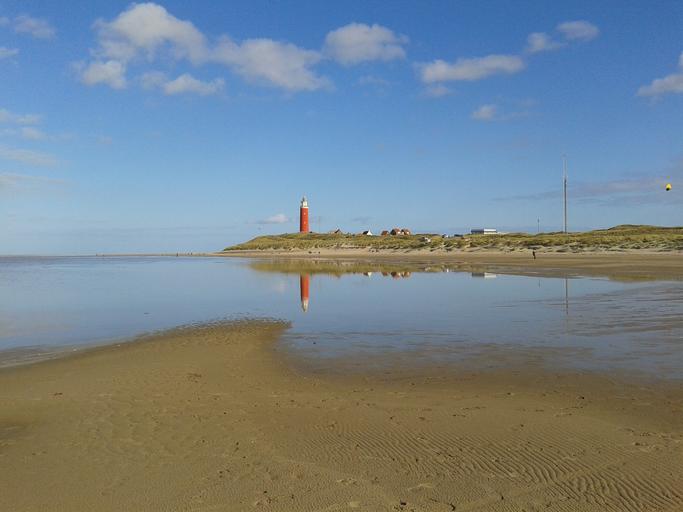 Keywords: lighthouse beach sea texel de cocksdorp sand watts wadden sea north sea ebb mirroring