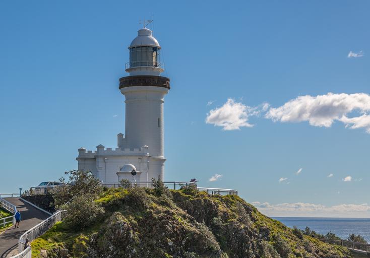 Keywords: lighthouse coastline navigation landmark beacon sky scenic white maritime safety byron bay australia