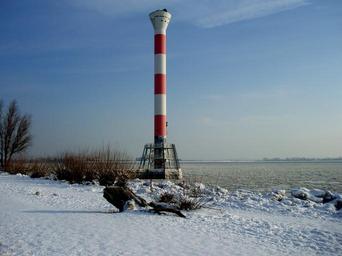 Keywords: lighthouse elbe river winter ice floes water landscape beacon shipping daymark navigation