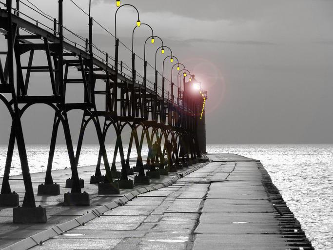 Keywords: South Haven lighthouse pier Lake Michigan architecture spring