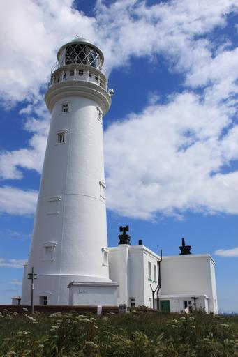 Keywords: lighthouse sea seaside white cloud flamborough