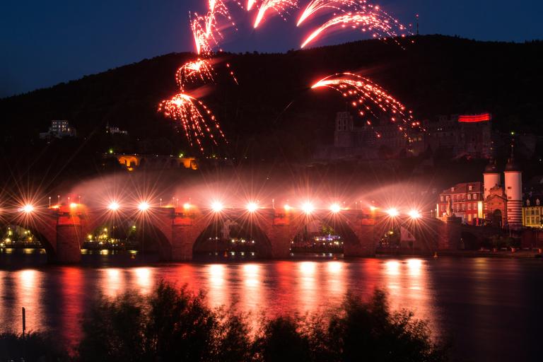 Keywords: lighting bridge building night fortress fireworks heidelberg neckar old bridge