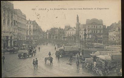Keywords: Lille - 2067 - La Grand Place vers les rues Ntionale et Esquermes.jpg PAGENAME Collection privée Scan Cartespostales PD-old Postcards of Lille Colonne de la Déesse