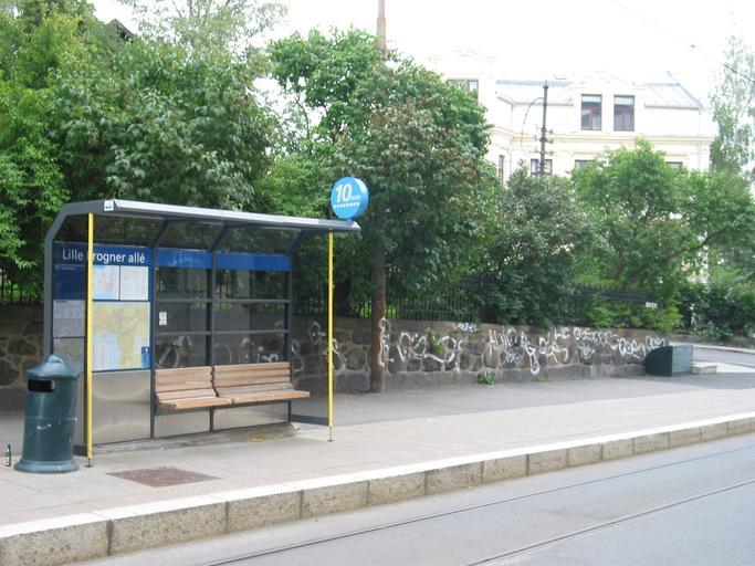 Keywords: Lille Frogner alle stasjon.jpg en Tramway station Lille Frogner allé in Frogner Oslo Norway own Punkmorten 2009-07-26 Frognerveien Oslo Lille Frogner allé tram station