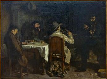 | Keywords: Lille Pdba courbet ornan.JPG Une après-dinée à Ornans Nachmittag in Ornans oil on canvas cm 195 275 Palais des Beaux-Arts de Lille Genre works own 1849 Creator Gustave Courbet http //mail wikipedia org/pipermail/wikide-l/2005-April/012195 html Other versions PD-old-auto Uploaded with UploadWizard Paintings by Gustave Courbet in the Musée des Beaux-Arts de Lille 1849 paintings 1840s paintings by Gustave Courbet Ornans | ||||