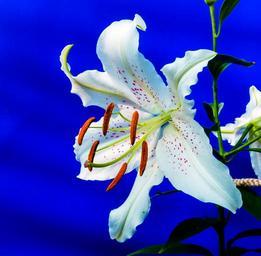 Keywords: lily blossom bloom flower white purple dots blossomed