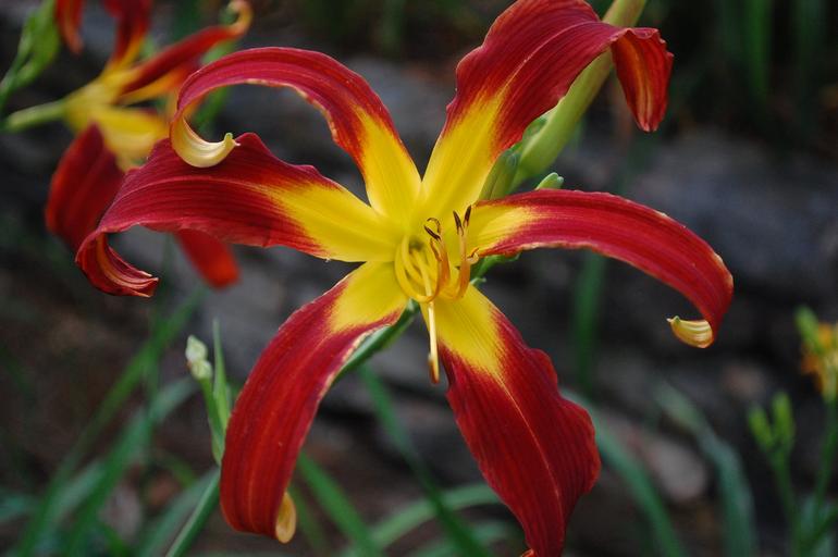 Keywords: lily flower tropical perennial plant bloom blossom nature floral yellow red color vibrant