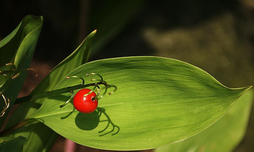Keywords: lily of the valley the fruit of lily of the valley autumn red jagoda the stem leaf garden plant flora shadow vanishing loneliness sunny green