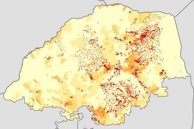 | Keywords: Limpopo 2011 population density map.svg ffffcc <1 inhabitant/km² ffeda0 1 “3 inhabitants/km² fed976 3 “10 inhabitants/km² feb24c 10 “30 inhabitants/km² fd8d3c 30 “100 inhabitants/km² fc4e2a 100 “300 inhabitants/km² e31a1c 300 “1000 inhabitants/km² bc0026 1000 “3000 inhabitants/km² 800026 >3000 inhabitants/km² Projection is Albers Equal-Area Conic with standard parallels at 25 5° S and 31 5° S and origin at 28 5° S 25 5° E Statistics South Africa's Census 2011 is the source of the basic population data The map results from my own processing of the data Htonl 2013-10-22 http //beta2 statssa gov za/ page_id 425 The following license applies to the population data on which the map is based the user acknowledges Stats SA as the source of the basic data wherever they process apply utilise publish or distribute the data and also that they specify that the relevant application and analysis where applicable result from their own processing of the data The following tag applies to the map itself Demographic maps of South Africa Maps of Limpopo |