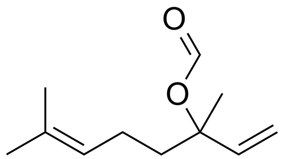 Keywords: Linalyl formate.svg Chemical structure of linalyl formate Own 19 46 16 December 2011 UTC Ed Edgar181 Monoterpenes Formate esters