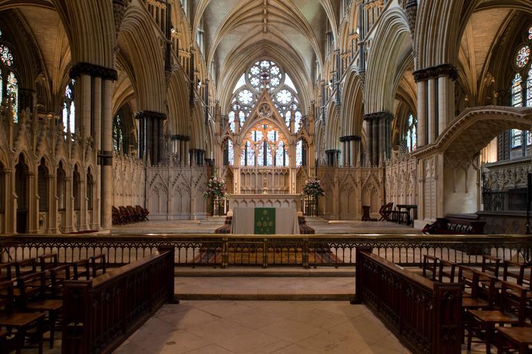 Keywords: lincoln cathedral altar communion rail carved stonework reredos medieval building choir seating