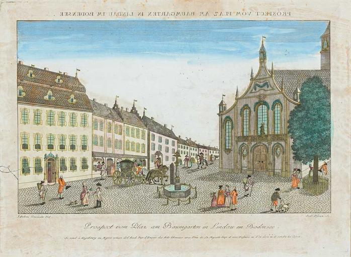 Keywords: Lindau Platz am Baumgarten Gmeinder Pfauz.jpg Prospect vom Plaz am Baumgarten in Lindau im Bodensee Guckkastenblatt Kol Kupferstich von Andreas Pfauz nach J Anton Gmeinder Augsburg um 1780 Schefold Nr 46229 Platte ca 32 x 44 cm http //www zeller de/ ~ 1780 Andreas Pfauz nach J Anton Gmeinder <gallery>Gemeinder Leizel Lindau Platz am Baumgarten jpg</gallery> PD-old-100 Images from Auktionshaus Zeller History of Lindau Bodensee Germany in the 1780s Peep show cards St Stephan Lindau Bodensee Johann Anton Gmeinder |