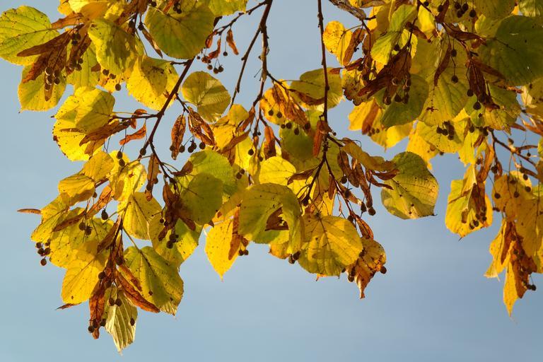 Keywords: linde tree autumn seeds flying seeds fall color leaves yellow fall foliage lime tilia platyphyllos summer linde eurybia linde deciduous tree tilia mallow malvaceae
