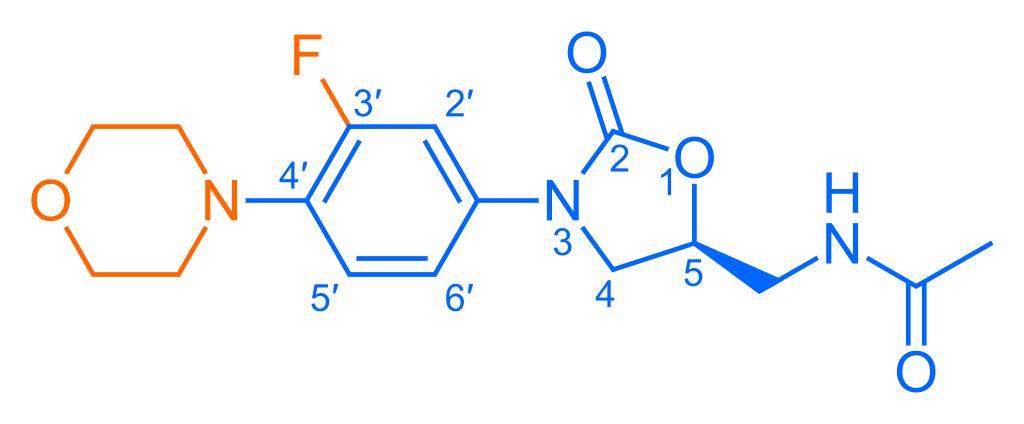 | Keywords: Linezolid showing oxazolidinone pharmacophore.svg  Skeletal formula of the antibiotic linezolid highlighting the oxazolidinone pharmacophore in blue and desirable structural characteristics in orange Created using http //www acdlabs com/download/chemsk html ACD/ChemSketch 10 0 and Inkscape Own work after Current Pharmaceutical Design 1996 2 2 175 “94 http //books google com/books id _HFitfA4OcUC pg PA175 lpg PA175 and Angewandte Chemie International Edition in English 42 18 2010 “23 2003 May PMID 12746812 10 1002/anie 200200528 2009-06-24 Fvasconcellos Linezolid Pharmacophores  |
