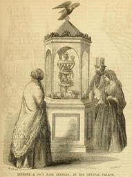 Keywords: Linherr et Co-hair jewelry showcase 1853.tiff en the showcase of the firm Linherr Co at the Exhibition of the Industry of All Nations in the New York Crystal Palace 1853 The jewelry were made of human hair with gold and precious stones https //archive org/stream/gleasonspictoria0506glea page/n237/mode/2up N N 1853 PD-old Hairwork jewellery Exhibition of the Industry of All Nations 1853 PD-old-100 |